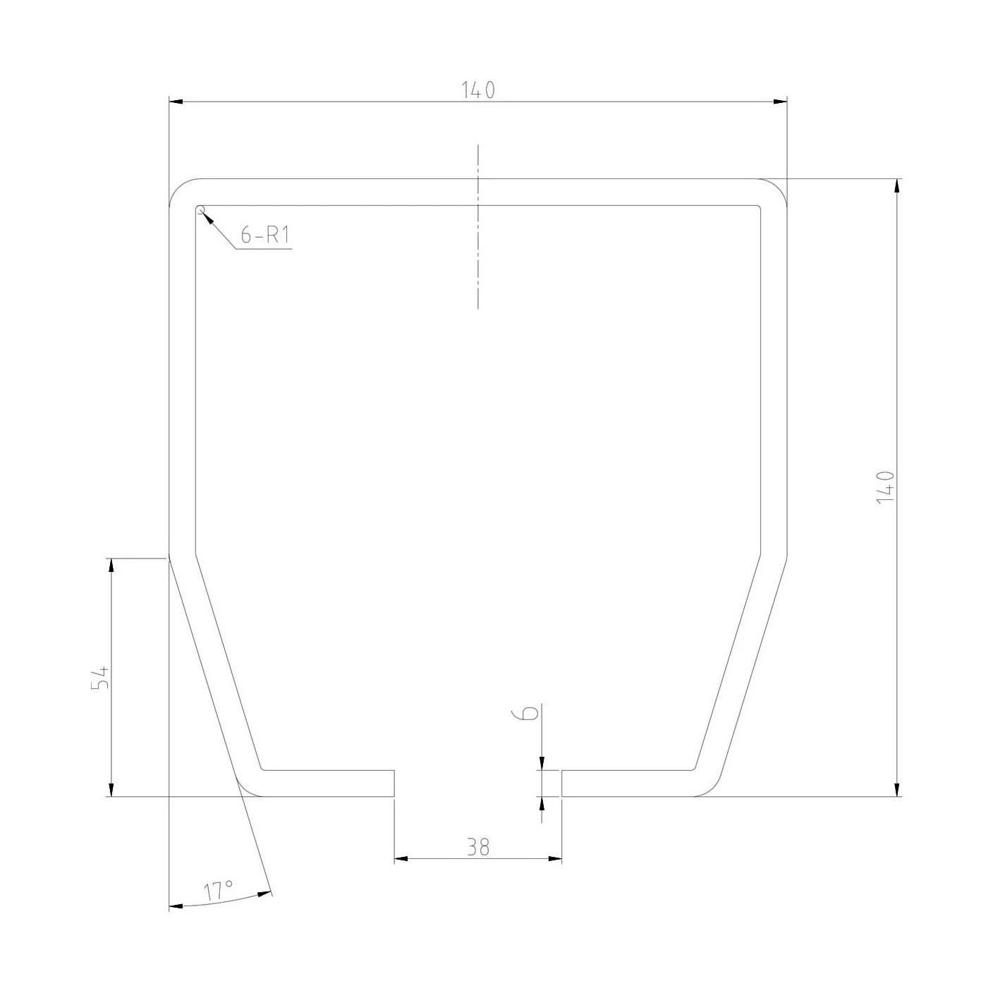 - Indvendig afrundingsradius: R1 mm