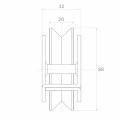 Rullen er monteret i stålmonteringsbeslag med huller til skruefastgørelse, hvilket muliggør hurtig og stabil montering direkte i dørrammens konstruktion. V-formede rilleprofil sikrer præcis føring på køreskinnen, minimerer sideværts spillerum og eliminerer ukontrollerede bevægelser af dørfløjen under åbning og lukning. I sættet medfølger monteringsskrue og indvendig støttebøjle, så installatøren modtager et komplet monteringssæt uden behov for at vælge yderligere komponenter.