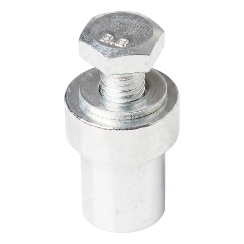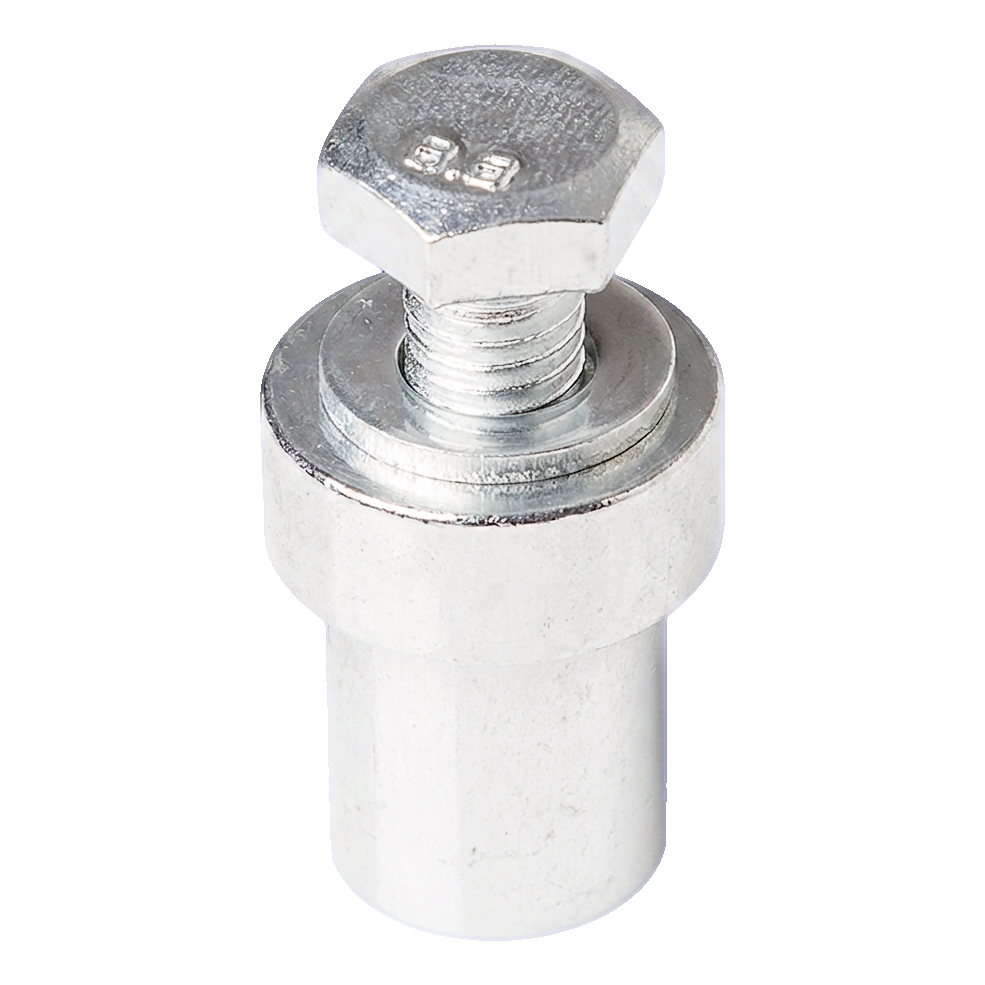 Hylsen er galvaniseret, hvilket garanterer høj korrosionsbestandighed selv under krævende atmosfæriske forhold. Kompakt konstruktion og lav vægt (46 g) gør monteringen nem — en standard sekskantnøgle til M8 skruer er tilstrækkelig. Elementet leveres komplet med M8 × 25 mm skrue klasse 8.8 og underlagsskive, så der ikke skal vælges yderligere tilbehør.