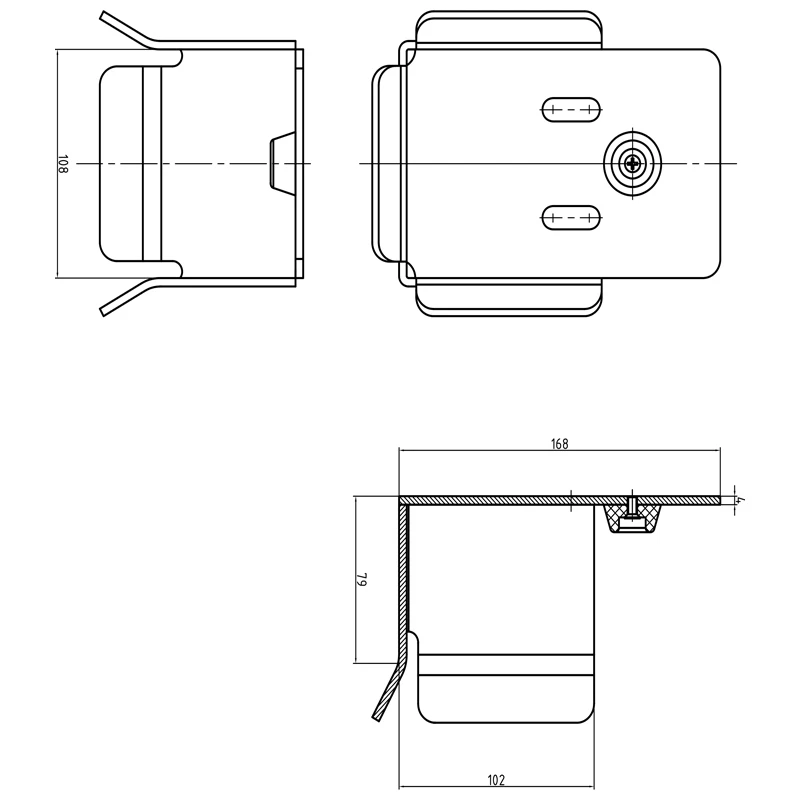 Holderen er udstyret med gummistødpude, der absorberer stød fra skinnen under lukning af porten, hvilket beskytter mekanismen mod skader og reducerer støj. Bønneformede monteringshuller muliggør positionsjustering af holderen efter montering, hvilket betydeligt letter indstilling af porten i føringslinjen. Spredte sidevinger fungerer som føringslister, der leder skinnen og sikrer glat og sikker kørsel selv ved mindre afvigelser i portens bane.