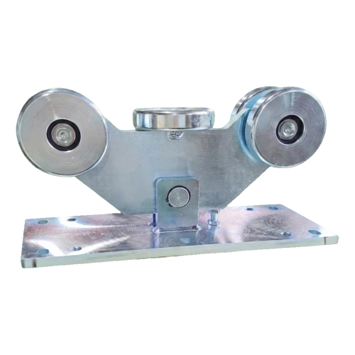 Køretøj 140 fra mærket PSG er et robust, 5-rullet bæreelement beregnet til skydporte, der kører på skinne 140 × 140 mm. Stålrullerne med stor diameter 126 mm sikrer jævn, stille kørsel selv med tunge portfløje — tilladt belastning når op til 1500 kg. Den ekstra vandrette rulle begrænser portens sideafvigelser, hvilket resulterer i stabil kørebane og mindre skinnefordling. For monteringsteams betyder det hurtigere montering, forudsigelig systemfunktion og færre serviceopkald.