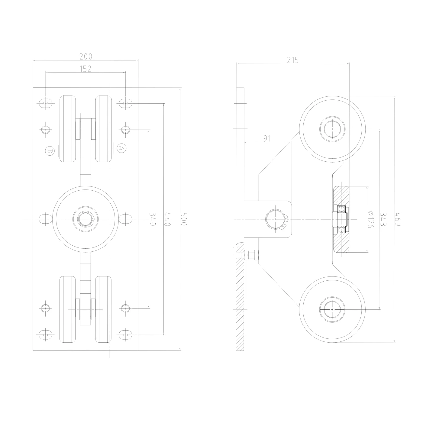 - Kørerullernes diameter: 126 mm