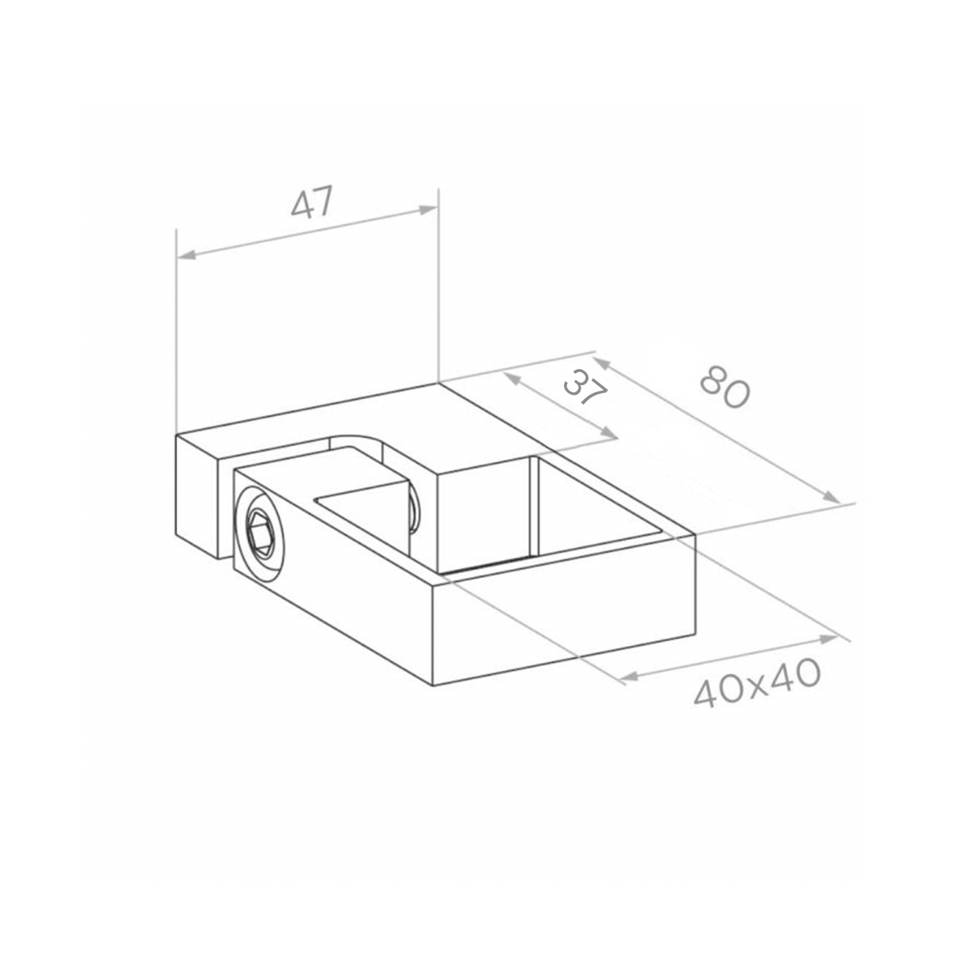 Spændeklemme til sidemontering af gelænderstolpe med profil 40×40 mm. Element beregnet til montering i væg, trappekinds eller anden lodret overflade — sikrer stabil understøtning af altan-, terrasse- eller trappegelænderstolpe. Fremstillet af rustfrit stål AISI 304 med satineret finish, hvilket garanterer høj korrosionsbestandighed og et æstetisk, moderne udseende.
