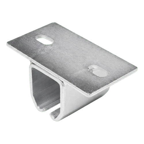 Galvaniseret skinne til skydeportholder beregnet til C-profil (køreskinne) med dimensioner 50×46 mm. Element anvendt i hængte porte — gør det muligt at ophænge føringsskinnen sikkert på loft eller bærebjælke. Solid konstruktion af galvaniseret stål sikrer holdbarhed og korrosionsbestandighed, hvilket gør skinnen velegnet både til indendørs og udendørs installationer.