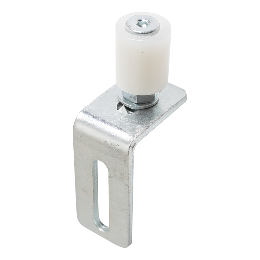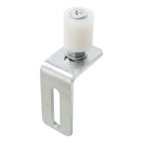 Styrekugle FI 30 justerbar fra mærket PSG er et pålideligt element i styresystemet til skydeporten. Dens opgave er at holde skinnen (c-profil) lodret under åbning og lukning af porten, hvilket resulterer i jævn og stille drift af hele mekanismen. Takket være muligheden for at justere kuglens position ved hjælp af det langformede monteringshul (bønne) i vinklen, kan installatøren præcist tilpasse styringen til forholdene på objektet — selv ved lette uregelmæssigheder i underlaget eller stolperne.