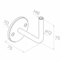 Beslaget har ikke monteringsplade — håndlisten forbindes med armen ved hjælp af gevind M6. Dette er en universel konstruktion, som fungerer godt både i boligbyggeri og i offentlige bygninger.