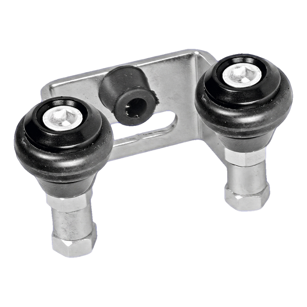 Stål øvre holder til skydport med gummerede føringsruller og central gummistødpude. Elementet er beregnet til selvbærende og skinneførte skydporte — stabiliserer portfløjen efter lukning, eliminerer sideværts bevægelser og sikrer stille, jævn drift. Gummerede ruller dæmper effektivt støj under portens bevægelse, og den ekstra stødpude absorberer stødet af fløjen i slutpositionen. Produktet er galvaniseret, hvilket garanterer høj korrosionsbestandighed og mange års holdbarhed under udendørs forhold.