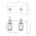 Føringen monteres på den øvre del af hegnsstolpen eller muren, hvor den omslutter portfløjen med to ruller. Den justerbare rulleafstand (lysåbning 49–79 mm) tillader tilpasning til forskellige lukkede profiler, der anvendes i skydeporte. M12 skruer muliggør sikker fastspænding af ruller, og de langagtige monteringshuller i vægbeslaget letter præcis nivellering.