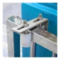 Føringen monteres på stolpe eller væg ved hjælp af sidemontagepladen med langhuller, som muliggør præcis positionsjustering. Langhullerne i monteringsarmen letter indstillingen af føringen i forhold til porten, og reguleringen af rulleafstanden giver hurtig tilpasning til fløjprofilets tykkelse — hele monteringen tager få minutter.