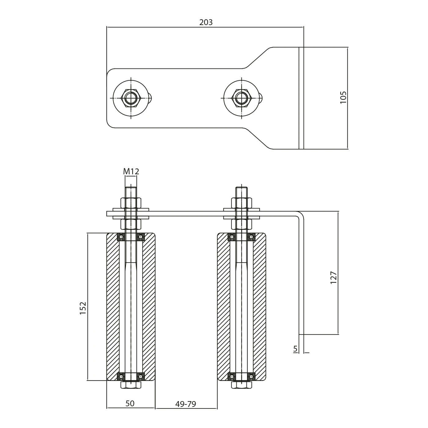 - Solid konstruktion — 5 mm plade og M12 skruer tåler betydelige belastninger
