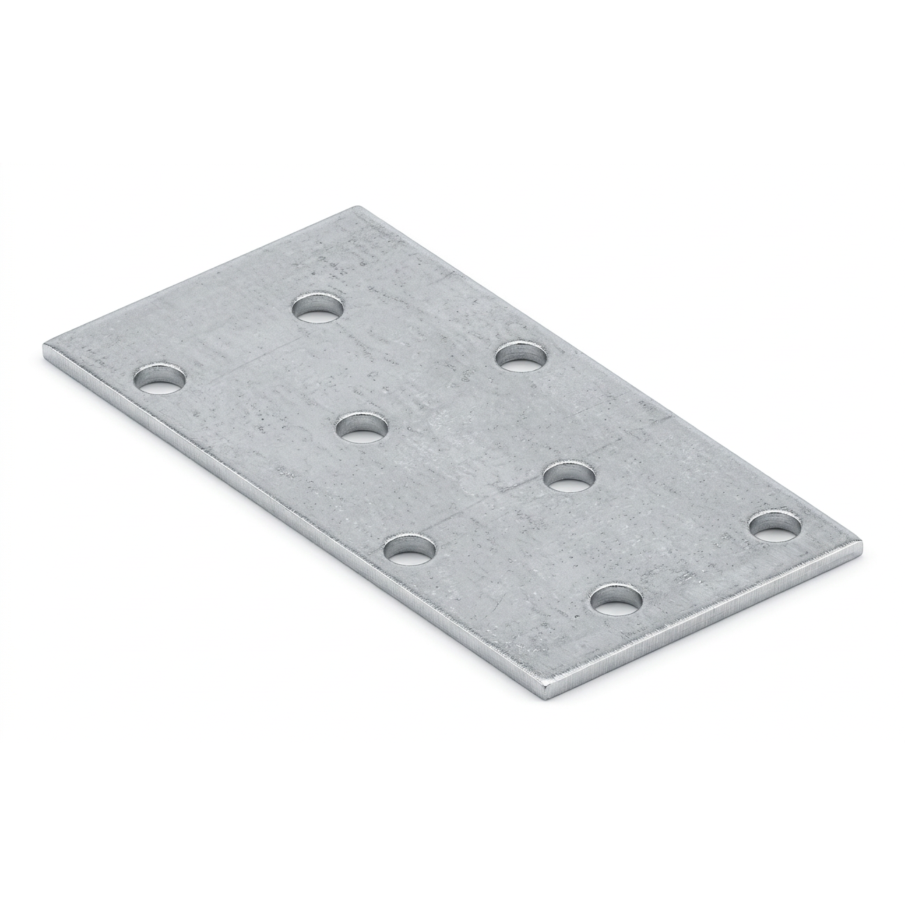 Flad perforeret samler 40×80×2 mm – galvaniseret monteringsplade