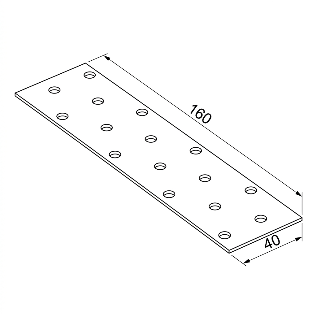 Perforeret plade PP 4 40×160×2 mm – galvaniseret stål tømrerbeslag