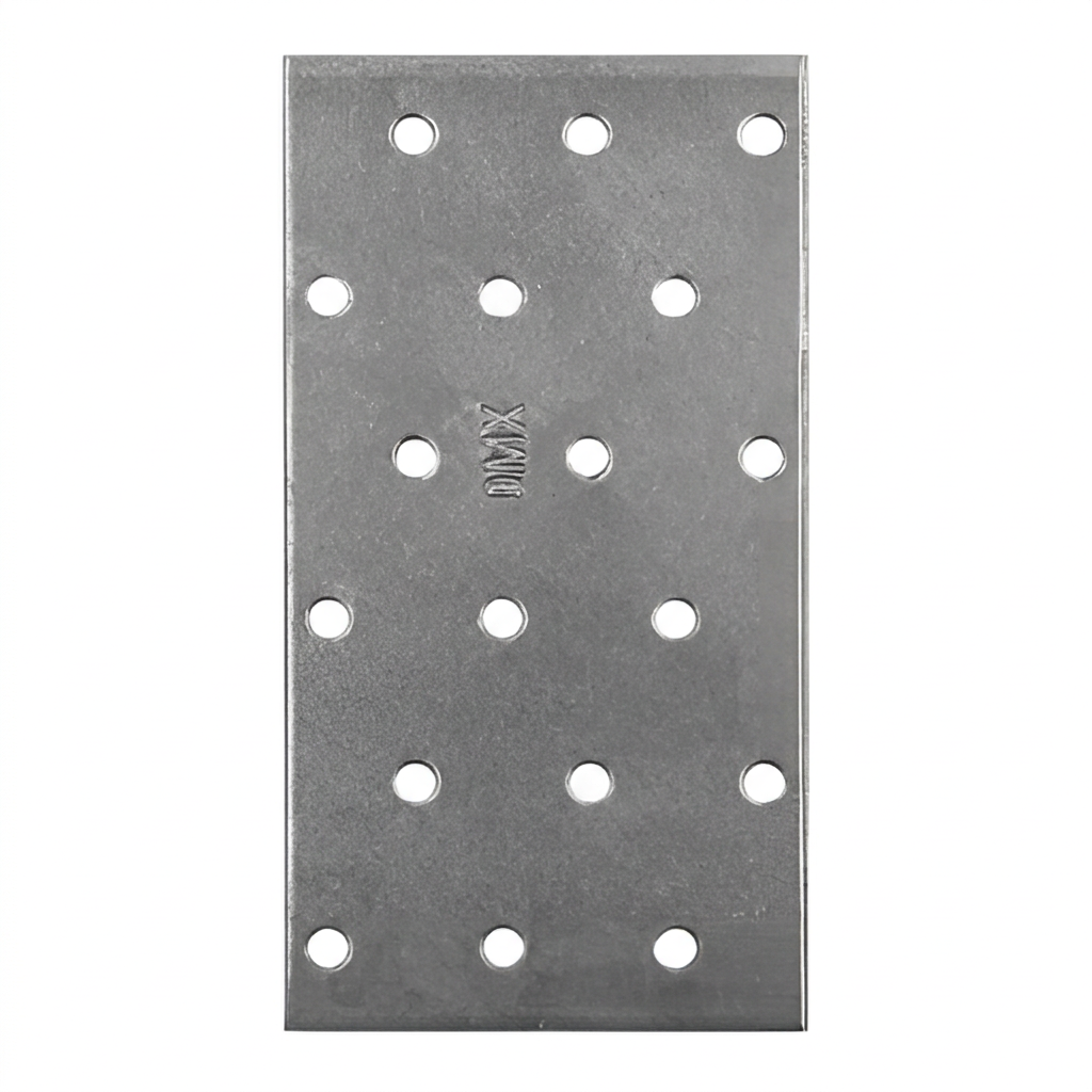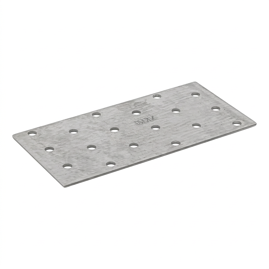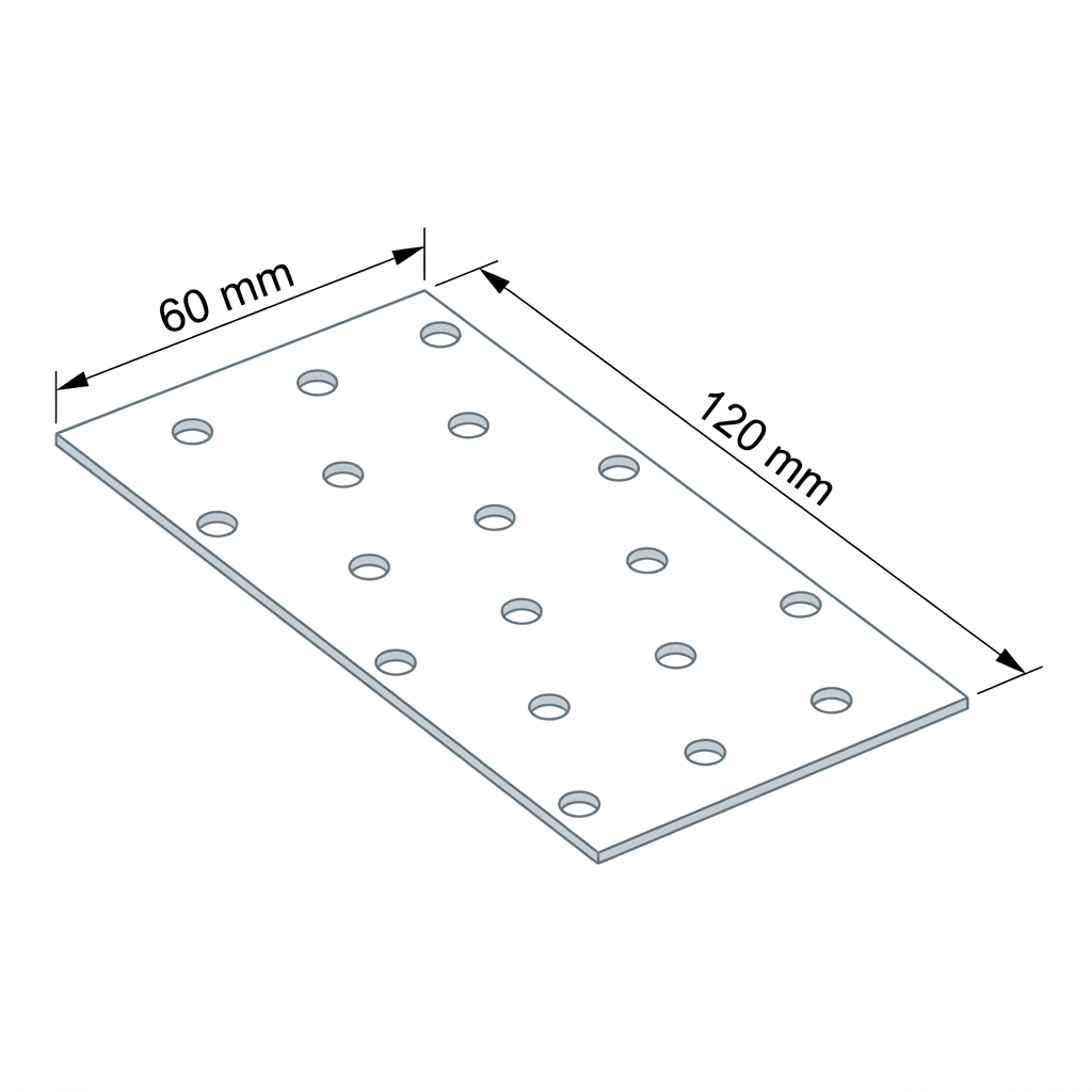 Perforeret plade 60×120 mm er en robust tømrerforbinder beregnet til professionelle samlinger i trækonstruktioner. Takket være 18 huller med en diameter på 5 mm, jævnt fordelt over pladefladen, muliggør den både enkle og komplekse tømrerforbindelser — overalt hvor sidefladerne på de sammenføjede elementer ligger i samme plan.