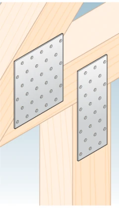 Den perforerede plade finder bred anvendelse inden for træbyggeri – fra enkle forstærkninger til komplekse tagspærsforbindelser. Monteringen udføres med følgende befæstigelsesmidler: