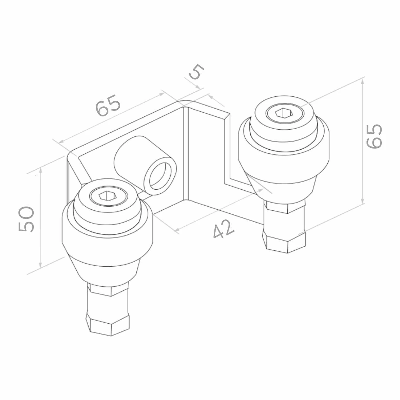 Øverste portbeslag med gummerede ruller – afstand 42 mm