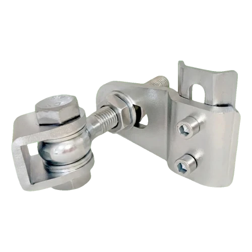 Monteringspladen med huller til imbussskruer muliggør montage både direkte på stålstolpe og på en ekstra forankringsplade — derved er hængslet kompatibelt med mange typer hegnskonstruktioner. Kugleleje eliminerer metal-mod-metal friktion, hvilket resulterer i fejlfri og støjfri drift gennem hele driftsperioden.