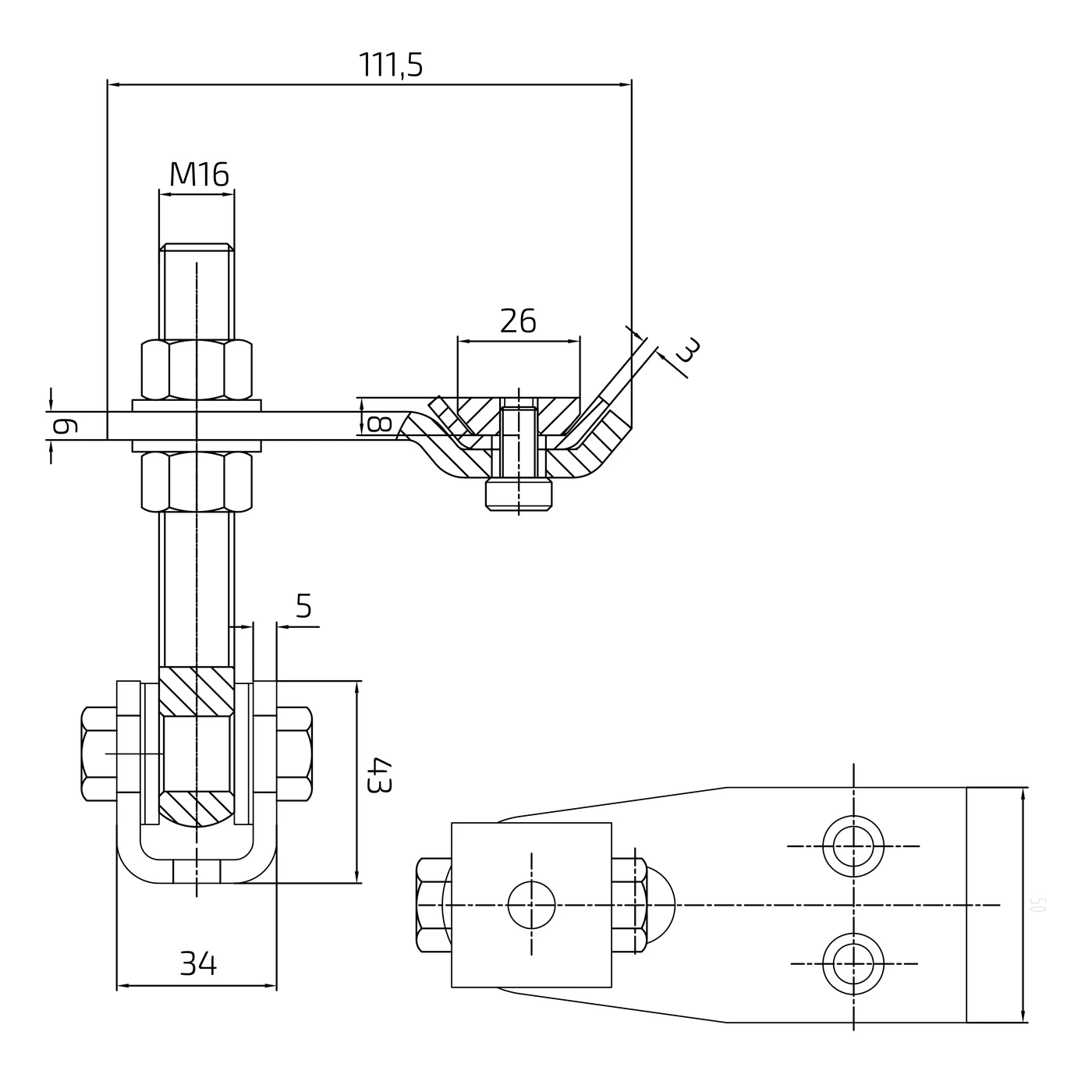 - Længde af U-beslag: 43 mm