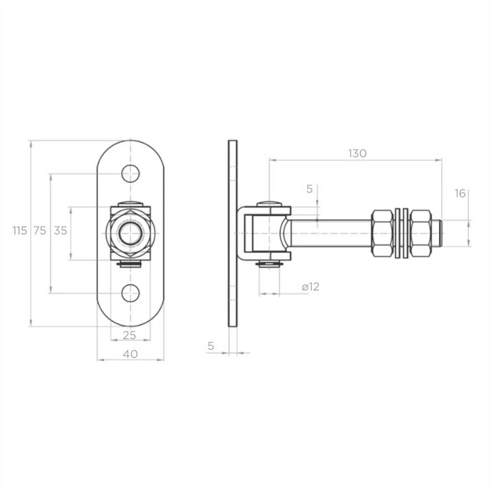 Regulerbart porthængsel M16 med plade 115×40 mm – galvaniseret
