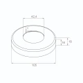 Rund maskerende roset beregnet til at dække monteringsbasen af søjlen i rustfrie gelændere. Den maskerer perfekt monteringshuller og svejsesteder og giver konstruktionen et æstetisk, professionelt udseende. Takket være præcis tilpasning til rør med diameter Ø42,4 mm sikrer den en ren og pæn afslutning af enhver installation.