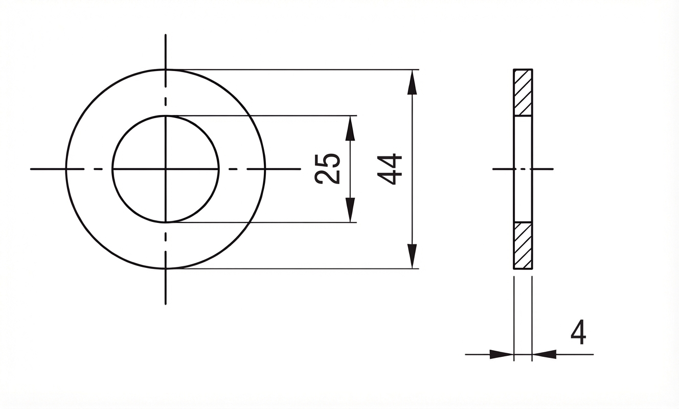 - Standard: DIN 125 (erstatning for ISO 7089/7090)
