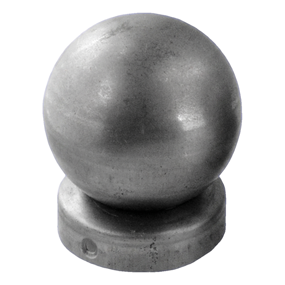Stålhætte til hegn med dekorativ kugle beregnet til montering på runde stolper med diameter fi 60 mm (2"). Den dekorative kugle med diameter fi 80 mm giver hegnet et elegant, afsluttet udseende, samtidig med at den beskytter stolpens indre mod vand, sne og andre vejrforhold. Produktet leveres i rå tilstand — det kan males eller korrosionsbeskyttelse kan foretages på eget initiativ, så farven tilpasses hele hegnets konstruktion.