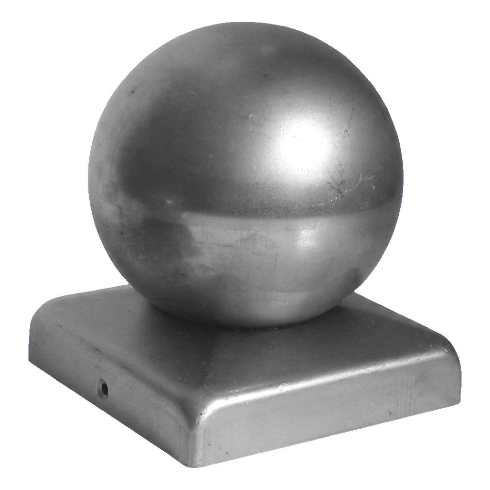 Stålhegn-hattetop med dekorativ kugle ø 100 mm til stolpe 120×120 mm – galvaniseret