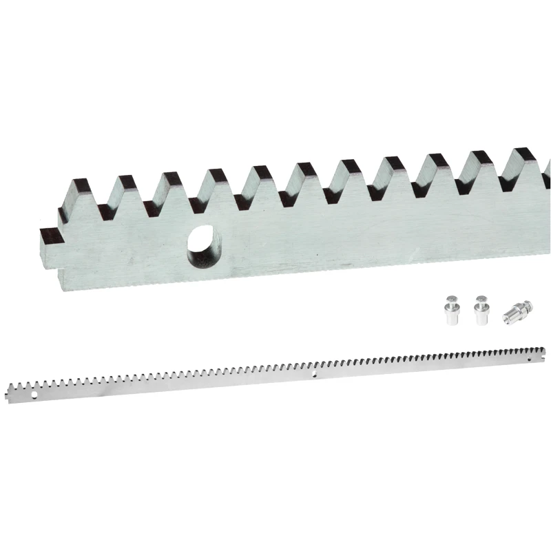 Stål tandskinne med lås er et pålideligt drivkomponent til selvbærende skydeporte. Takket være den solide konstruktion med en tykkelse på 8 mm og en længde på 1000 mm sikrer den en jævn og lydsvag portbevægelse i mange år.