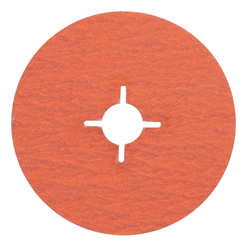 Grov granulering P36 sikrer hurtig materialefjernelse og fungerer overalt, hvor arbejdstempo er afgørende — ved fjernelse af svejsesømme, tykkere rustlag samt skarpe grater efter skæring. Skiven er kompatibel med standard 125 mm vinkelslibere udstyret med støtteplader til fiberskiver.