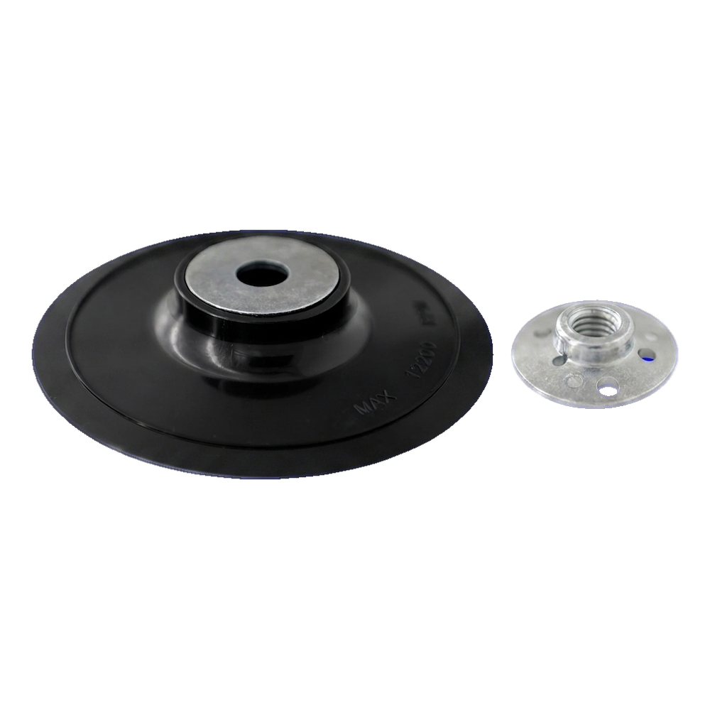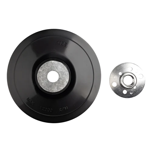 Base til fiberrondeller Starflex 125 mm er en solid og afprøvet adapter beregnet til vinkelsliber med M14 gevind. Den muliggør hurtig montering af fiberrondeller og øjeblikkelig arbejdsstart — uden unødvendige driftsstop mellem udskiftninger af slibemateriale. Underlaget er fremstillet af holdbart kunststof og sikrer lang levetid selv ved intensiv brug på byggeplads og i værksted.