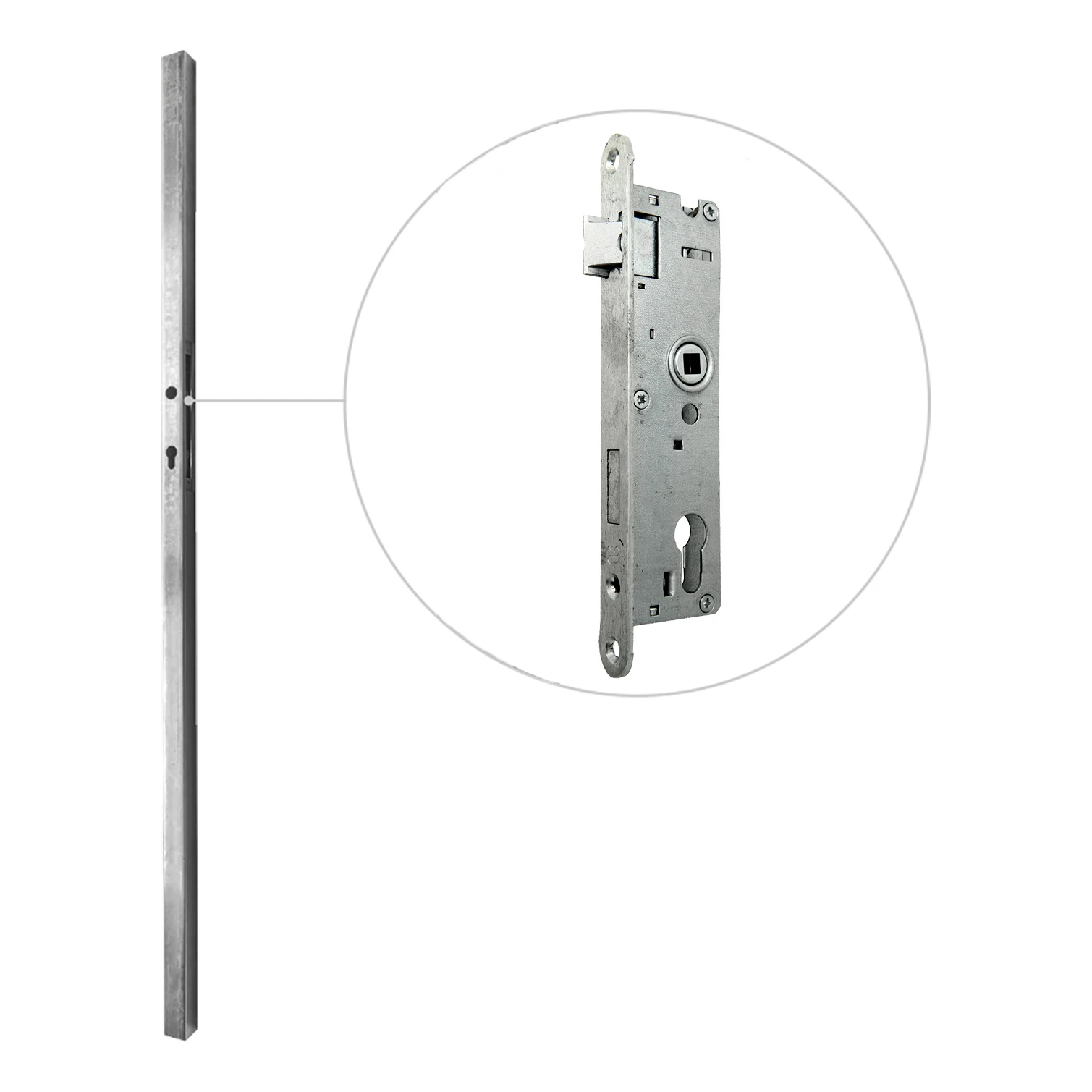 Kassetten, der er integreret i stolpen, tjener en dobbelt funktion – den skjuler låsemekanismen og beskytter den samtidig mod vejrpåvirkninger. Låsen er tilpasset en standard cylinderlås samt et håndtag med en 8 mm firkantdorn, hvilket sikrer fuld kompatibilitet med populære beslag, der er tilgængelige på markedet.