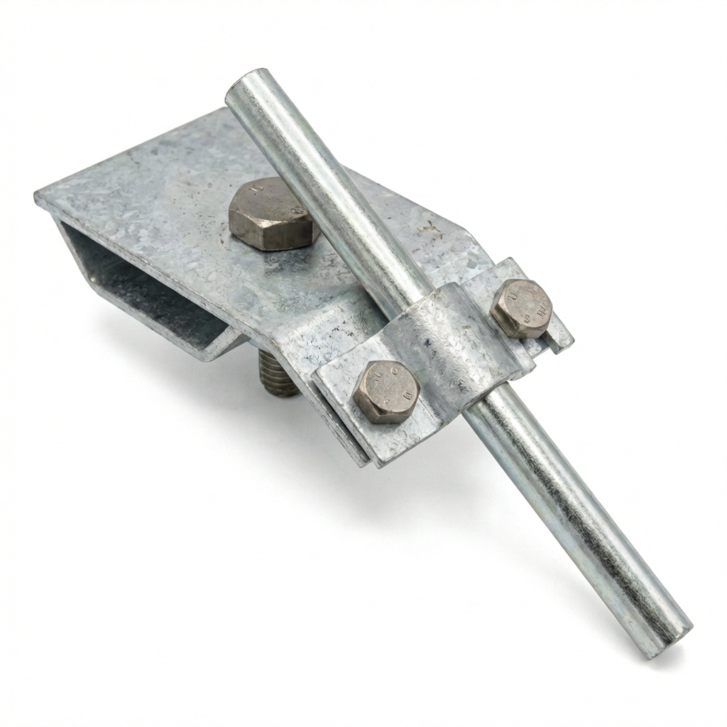 Rendeholder er et pålideligt element i lynaflederanlæg, designet til stabilisering af lynleder ved passage over tagrender. Takket være den solide konstruktion i galvaniseret stål sikrer den varig og sikker fastgørelse af rund leder med diameter Ø8–10 mm.