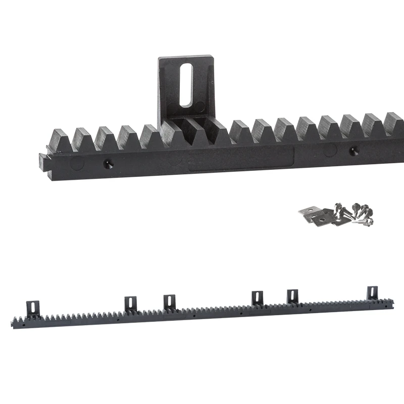 Monteringssæt medfølger – pakken indeholder selvborende skruer med skiver, så monteringen ikke kræver yderligere tilbehør. Tandstangen har seks monteringsbeslag, der muliggør hurtig og præcis fastgørelse til portfløjen.