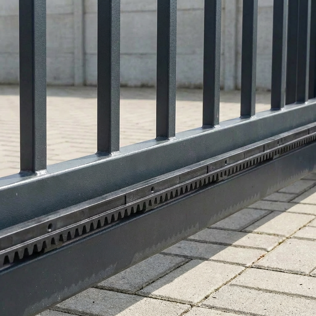 Tandstang i plast med indstøbt stålkerne er et pålideligt drivkomponent til selvbærende skydeporte. Kombinationen af stålets styrke og den støjdæmpende plastkabale sikrer jævn og lydløs drift af portautomatikken i mange år.