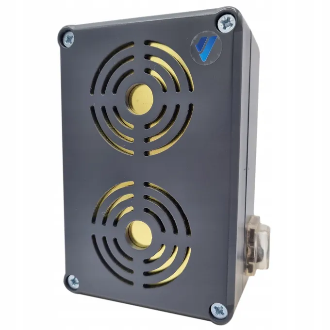 To piezoelektriske højttalere Ø50 mm fremstillet af messing sikrer høj effekt og holdbarhed. Beskyttelsesgitre beskytter transducerne mod mekanisk skade, og silikone pakninger samt hætte på kontakten garanterer fuld tæthed af kabinettet.