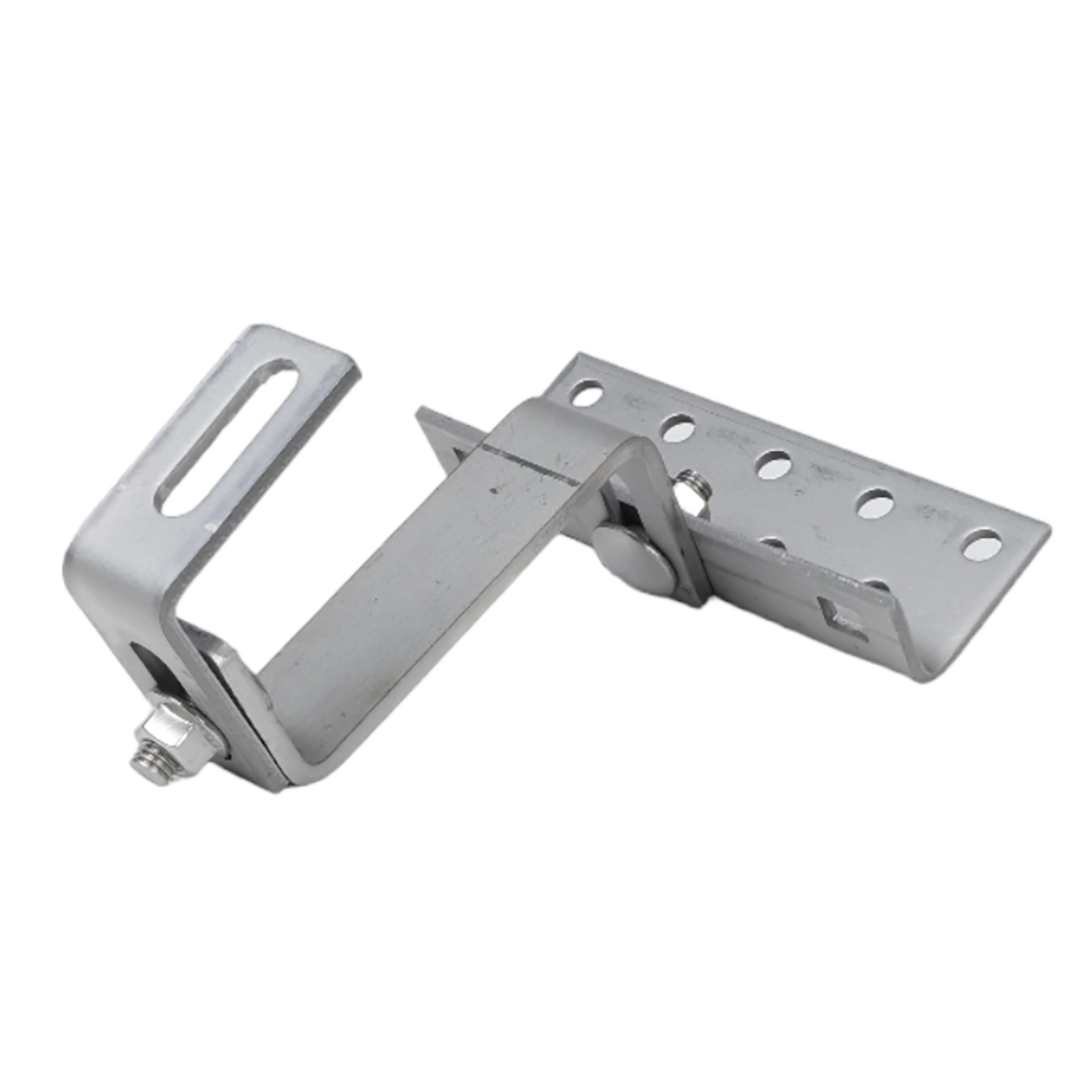 Vario Tagkrog 3X Justerbar, rustfrit stål 1.4016, med dimensioner 120x30x5/4mm og M10 hul til profil til fotovoltaiske systemer.